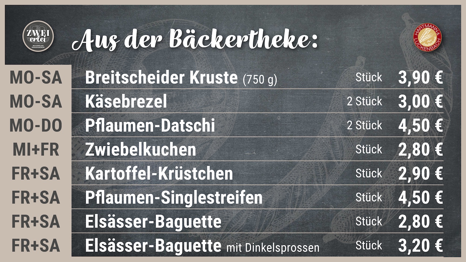 Wir bieten Ihnen Westerwälder Genusshandwerk in gemütlicher Atmosphäre und modernem Ambiente. Beginnend mit den beliebten Frühstücken der Bäckerei Hartmann & Luckenbach über die wechselnden Wochen- und Mittagsgerichte der Metzgerei Reuther bis hin zu vielfältigen Snacks und Kaffeespezialitäten, Torten und Kuchen, gibt es für jeden Geschmack etwas Leckeres.